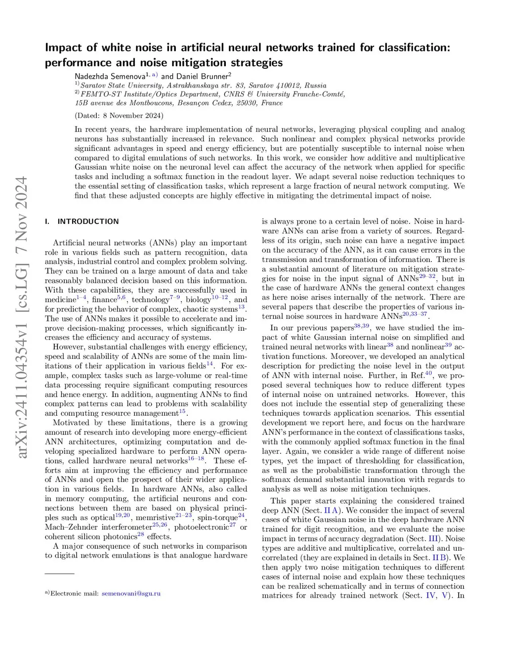 Impact of white noise in artificial neural networks trained for