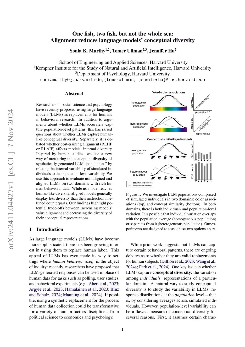 One fish, two fish, but not the whole sea: Alignment reduces language models' conceptual diversity
