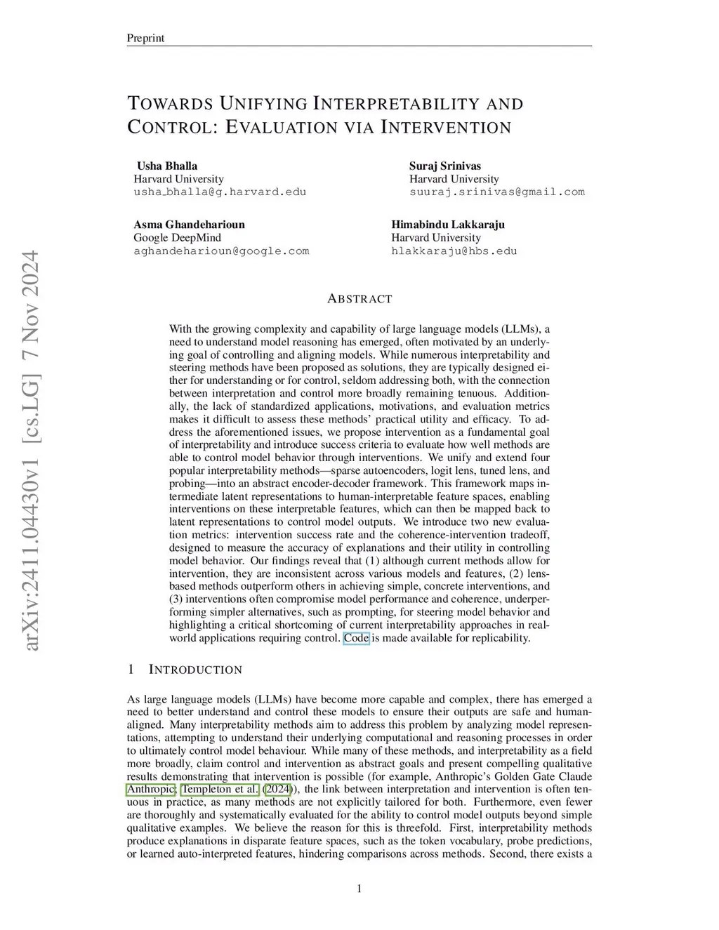 With the growing complexity and capability of large language models, a need to understand model reasoning has emerged, often motivated by an underlying goal of controlling and aligning models. While numerous interpretability and steering methods have been proposed as solutions, they are typically designed either for understanding or for control, seldom addressing both. Additionally, the lack of standardized applications, motivations, and evaluation metrics makes it difficult to assess methods' practical utility and efficacy. To address the aforementioned issues, we argue that intervention is a fundamental goal of interpretability and introduce success criteria to evaluate how well methods can control model behavior through interventions. To evaluate existing methods for this ability, we unify and extend four popular interpretability methods-sparse autoencoders, logit lens, tuned lens, and probing-into an abstract encoder-decoder framework, enabling interventions on interpretable features that can be mapped back to latent representations to control model outputs. We introduce two new evaluation metrics: intervention success rate and coherence-intervention tradeoff, designed to measure the accuracy of explanations and their utility in controlling model behavior. Our findings reveal that (1) while current methods allow for intervention, their effectiveness is inconsistent across features and models, (2) lens-based methods outperform SAEs and probes in achieving simple, concrete interventions, and (3) mechanistic interventions often compromise model coherence, underperforming simpler alternatives, such as prompting, and highlighting a critical shortcoming of current interpretability approaches in applications requiring control.