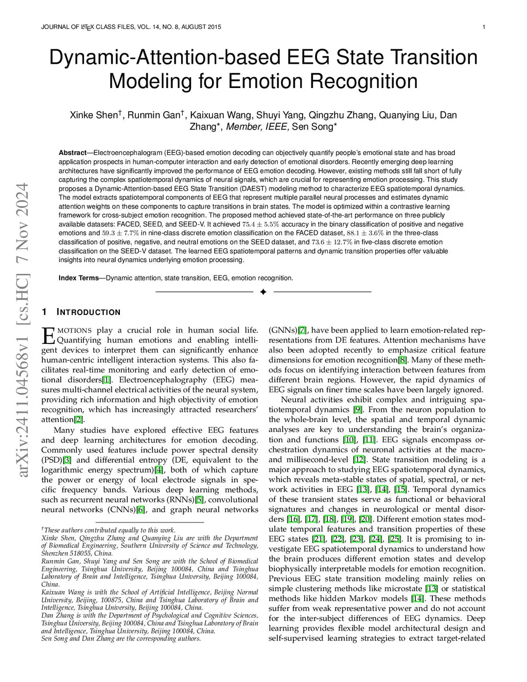 Dynamic-Attention-based EEG State Transition Modeling for Emotion