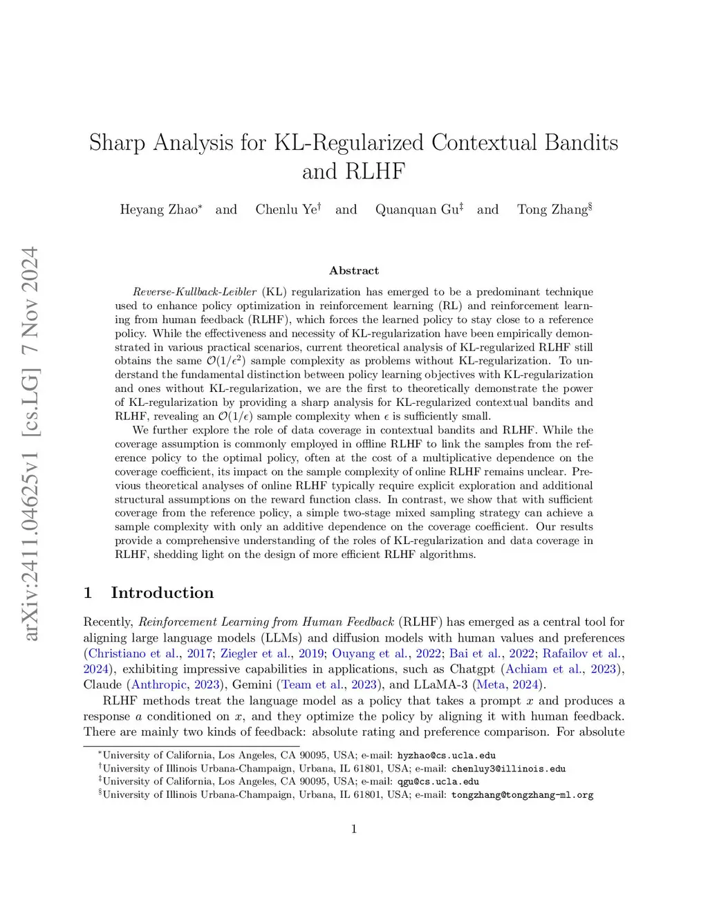 Sharp Analysis for KL-Regularized Contextual Bandits and RLHF