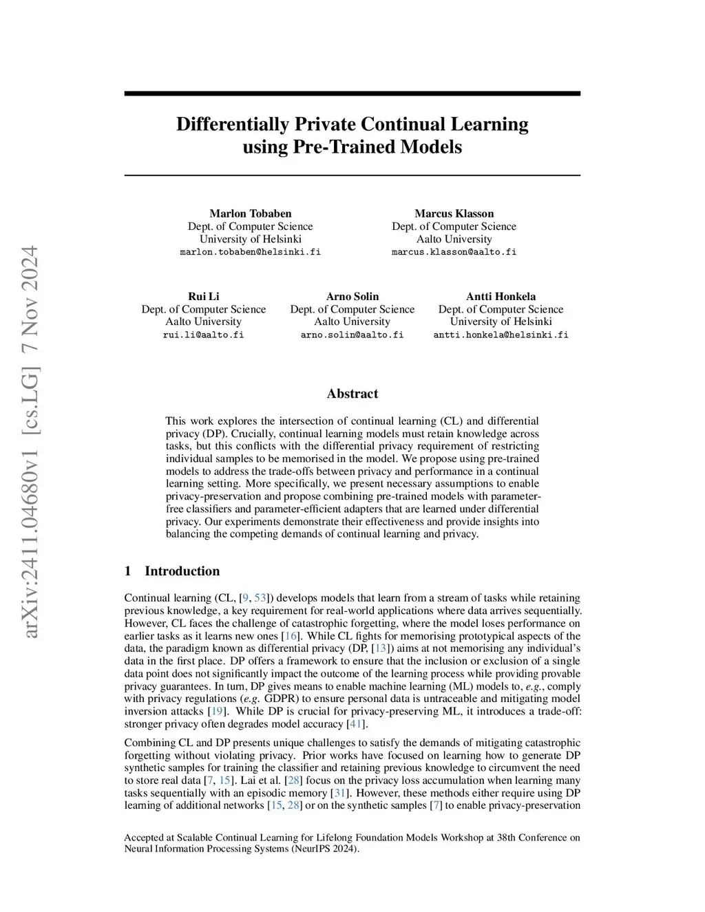The goal of continual learning (CL) is to retain knowledge across tasks, but this conflicts with strict privacy required for sensitive training data that prevents storing or memorising individual samples. To address that, we combine CL and differential privacy (DP). We highlight that failing to account for privacy leakage through the set of labels a model can output can break the privacy of otherwise valid DP algorithms. This is especially relevant in CL. We show that mitigating the issue with a data-independent overly large label space can have minimal negative impact on utility when fine-tuning a pre-trained model under DP, while learning the labels with a separate DP mechanism risks losing small classes.