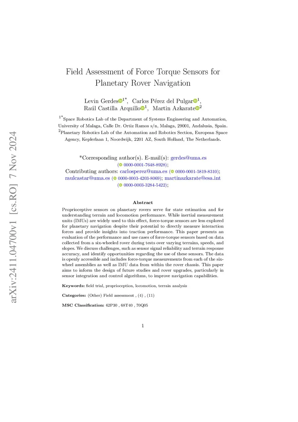 Field Assessment of Force Torque Sensors for Planetary Rover Navigation