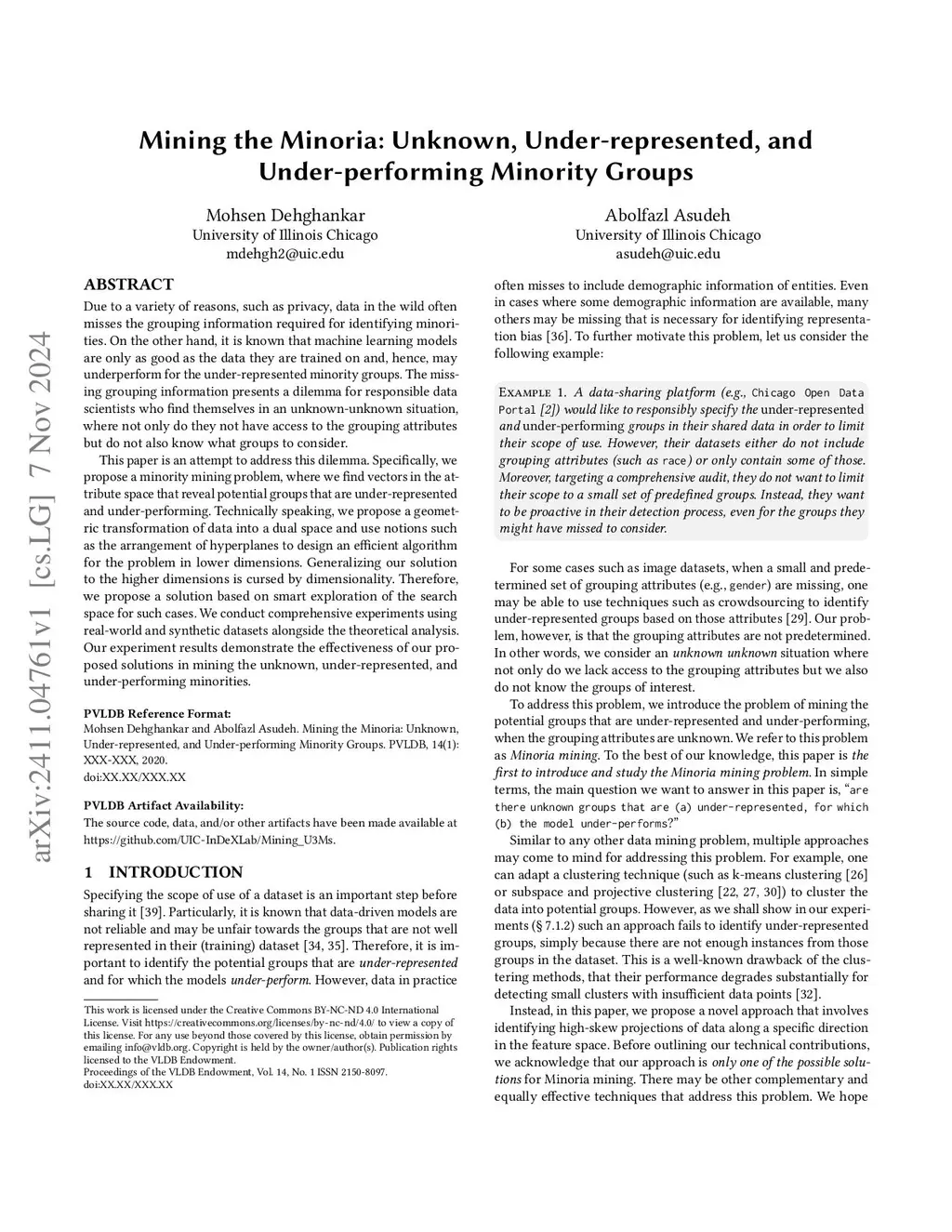 Due to a variety of reasons, such as privacy, data in the wild often misses the grouping information required for identifying minorities. On the other hand, it is known that machine learning models are only as good as the data they are trained on and, hence, may underperform for the under-represented minority groups. The missing grouping information presents a dilemma for responsible data scientists who find themselves in an unknown-unknown situation, where not only do they not have access to the grouping attributes but do not also know what groups to consider.This paper is an attempt to address this dilemma. Specifically, we propose a minority mining problem, where we find vectors in the attribute space that reveal potential groups that are under-represented and under-performing. Technically speaking, we propose a geometric transformation of data into a dual space and use notions such as the arrangement of hyperplanes to design an efficient algorithm for the problem in lower dimensions. Generalizing our solution to the higher dimensions is cursed by dimensionality. Therefore, we propose a solution based on smart exploration of the search space for such cases. We conduct comprehensive experiments using real-world and synthetic datasets alongside the theoretical analysis. Our experiment results demonstrate the effectiveness of our proposed solutions in mining the unknown, under-represented, and under-performing minorities.