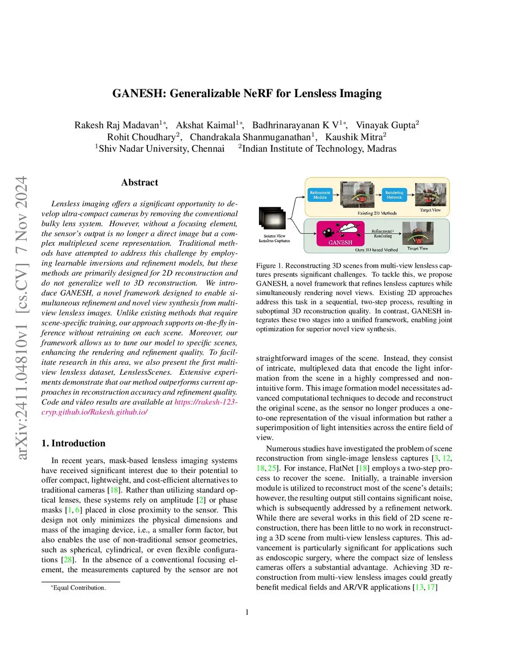GANESH: Generalizable NeRF for Lensless Imaging