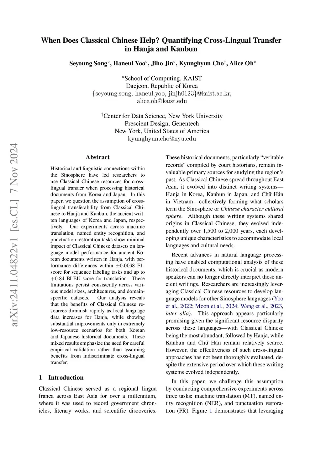 Shared Heritage, Distinct Writing: Rethinking Resource Selection for East Asian Historical Documents