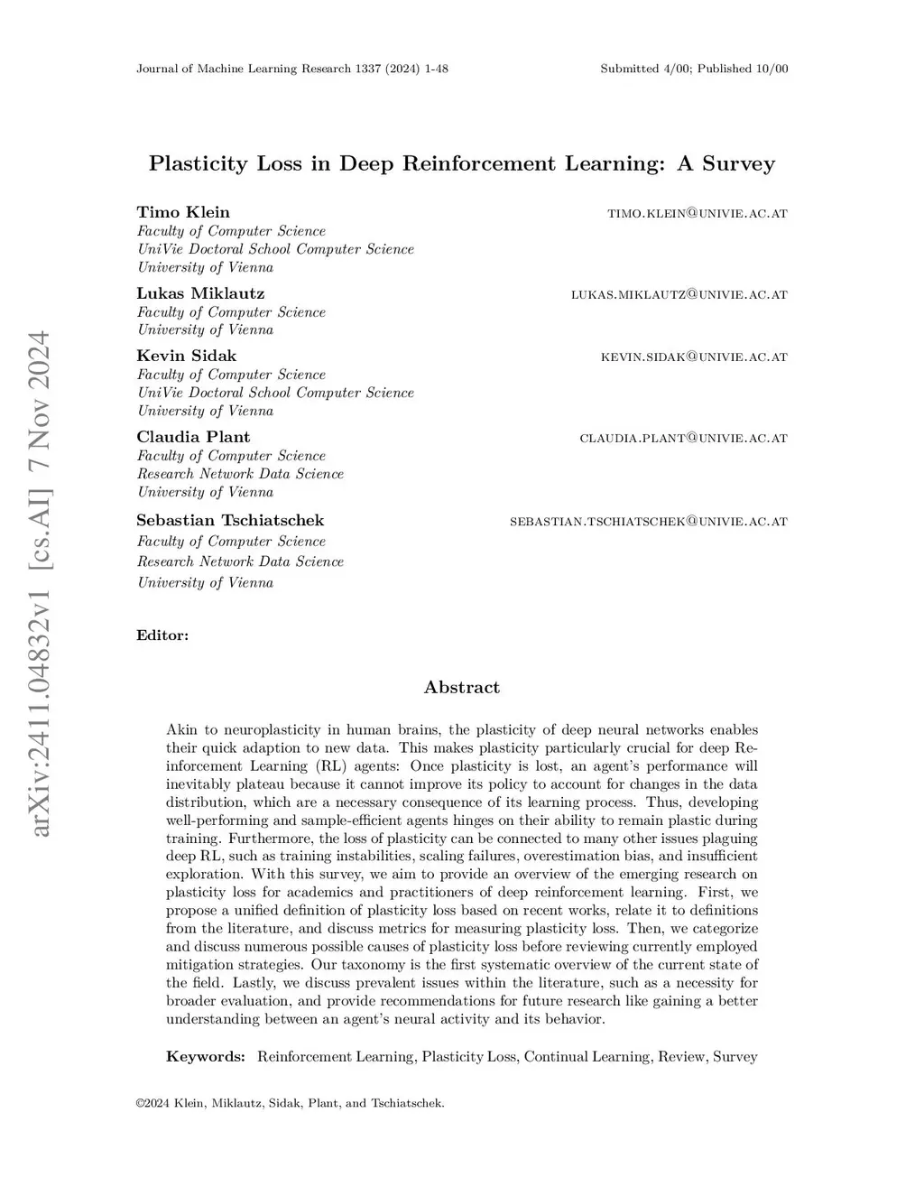 Plasticity Loss in Deep Reinforcement Learning: A Survey