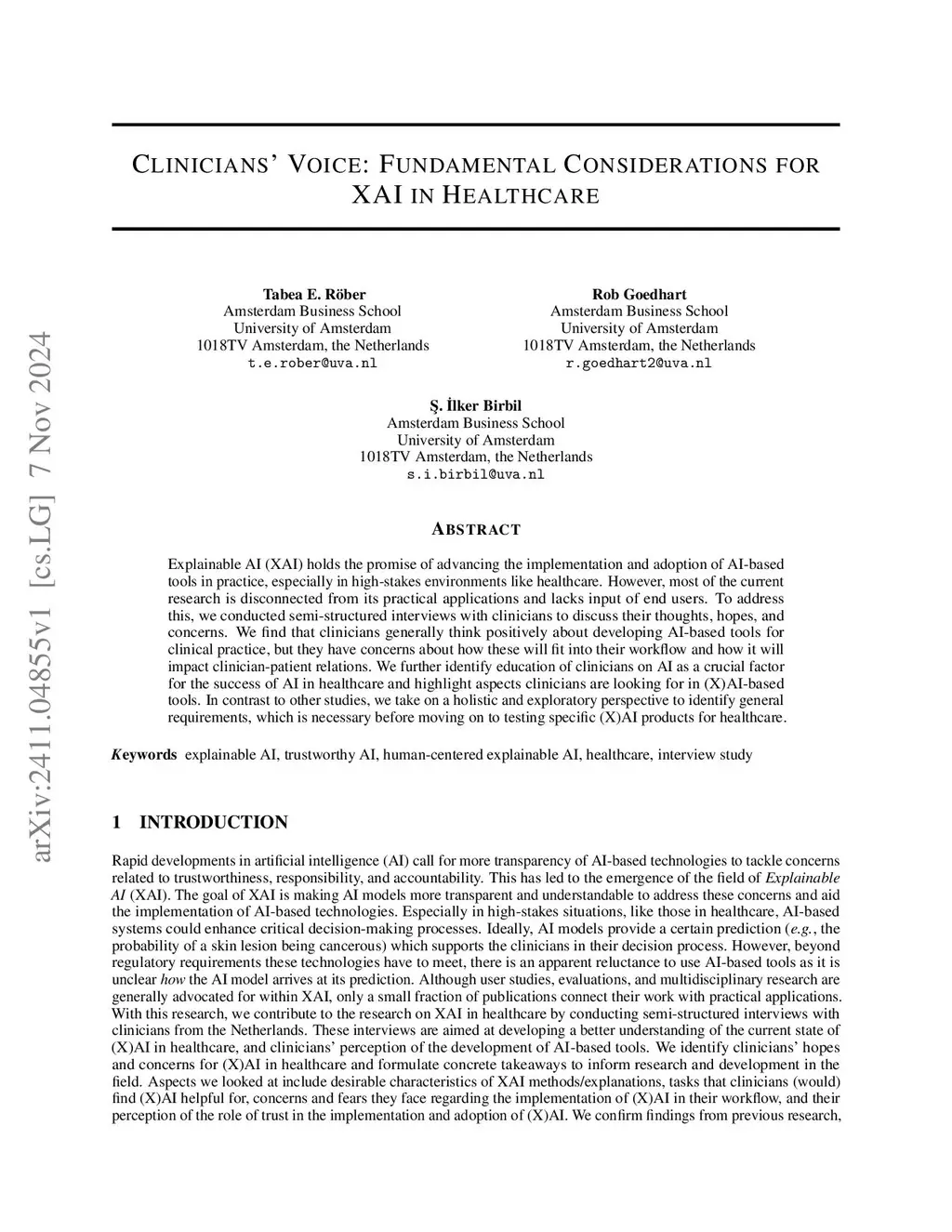Explainable AI (XAI) holds the promise of advancing the implementation and adoption of AI-based tools in practice, especially in high-stakes environments like healthcare. However, most of the current research lacks input from end users, and therefore their practical value is limited. To address this, we conducted semi-structured interviews with clinicians to discuss their thoughts, hopes, and concerns. Clinicians from our sample generally think positively about developing AI-based tools for clinical practice, but they have concerns about how these will fit into their workflow and how it will impact clinician-patient relations. We further identify training of clinicians on AI as a crucial factor for the success of AI in healthcare and highlight aspects clinicians are looking for in (X)AI-based tools. In contrast to other studies, we take on a holistic and exploratory perspective to identify general requirements for (X)AI products for healthcare before moving on to testing specific tools.