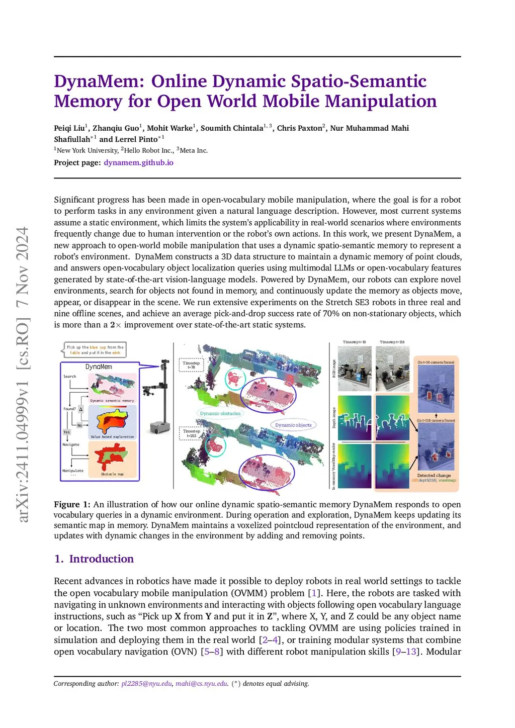 DynaMem: Online Dynamic Spatio-Semantic Memory for Open World Mobile Manipulation