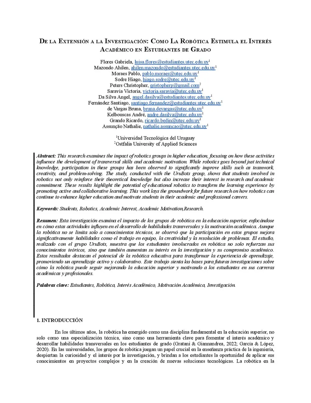 De la Extensión a la Investigación: Como La Robótica Estimula el