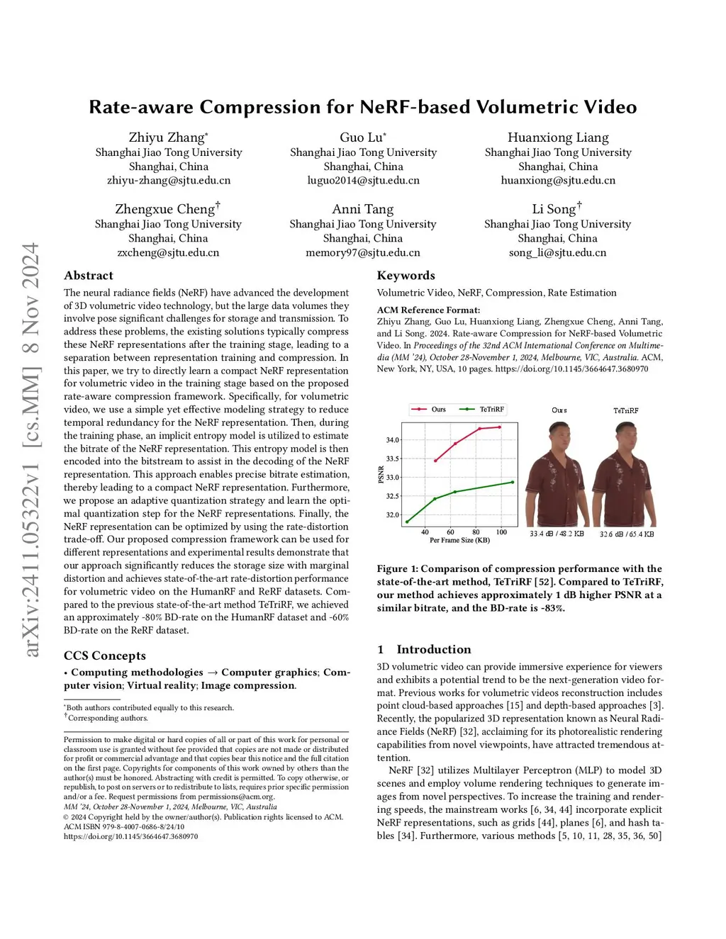Rate-aware Compression for NeRF-based Volumetric Video