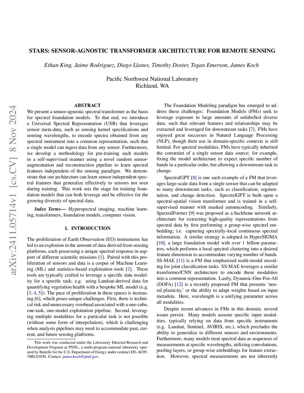 STARS: Sensor-agnostic Transformer Architecture for Remote Sensing