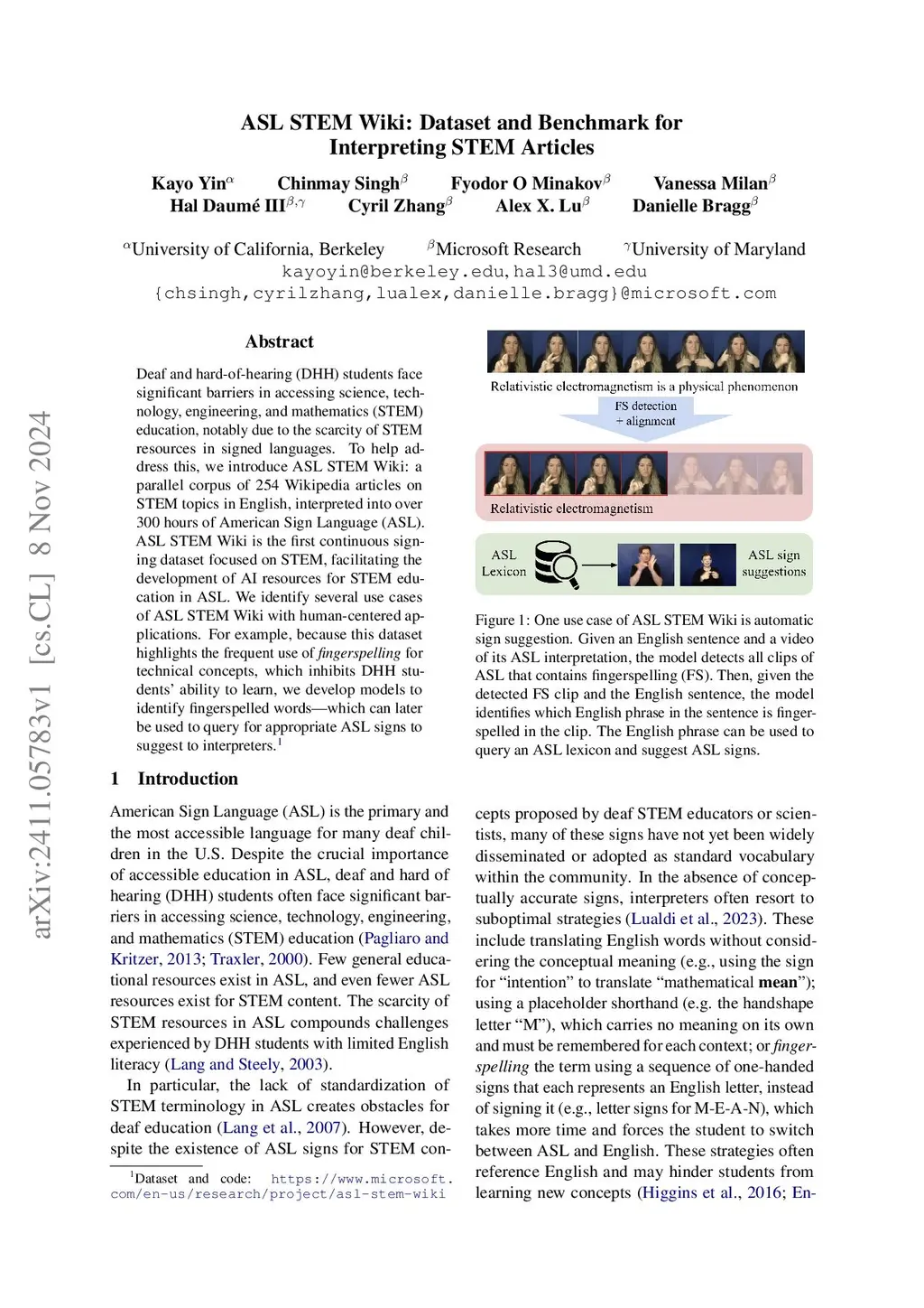 ASL STEM Wiki: Dataset and Benchmark for Interpreting STEM Articles