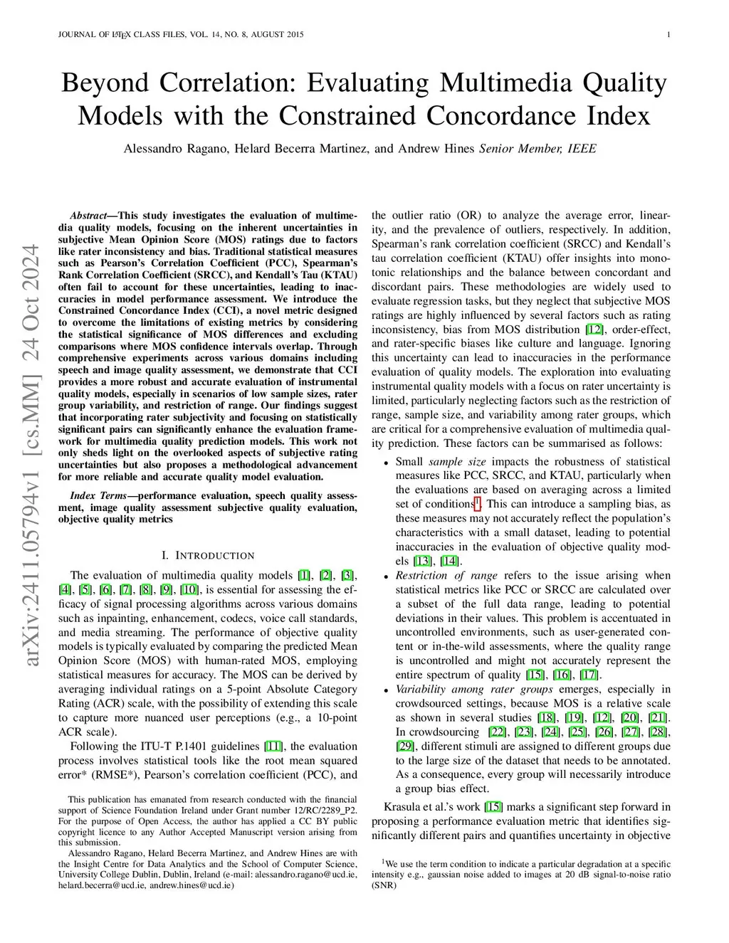 This study investigates the evaluation of multimedia quality models, focusing on the inherent uncertainties in subjective Mean Opinion Score (MOS) ratings due to factors like rater inconsistency and bias. Traditional statistical measures such as Pearson's Correlation Coefficient (PCC), Spearman's Rank Correlation Coefficient (SRCC), and Kendall's Tau (KTAU) often fail to account for these uncertainties, leading to inaccuracies in model performance assessment. We introduce the Constrained Concordance Index (CCI), a novel metric designed to overcome the limitations of existing metrics by considering the statistical significance of MOS differences and excluding comparisons where MOS confidence intervals overlap. Through comprehensive experiments across various domains including speech and image quality assessment, we demonstrate that CCI provides a more robust and accurate evaluation of instrumental quality models, especially in scenarios of low sample sizes, rater group variability, and restriction of range. Our findings suggest that incorporating rater subjectivity and focusing on statistically significant pairs can significantly enhance the evaluation framework for multimedia quality prediction models. This work not only sheds light on the overlooked aspects of subjective rating uncertainties but also proposes a methodological advancement for more reliable and accurate quality model evaluation.
