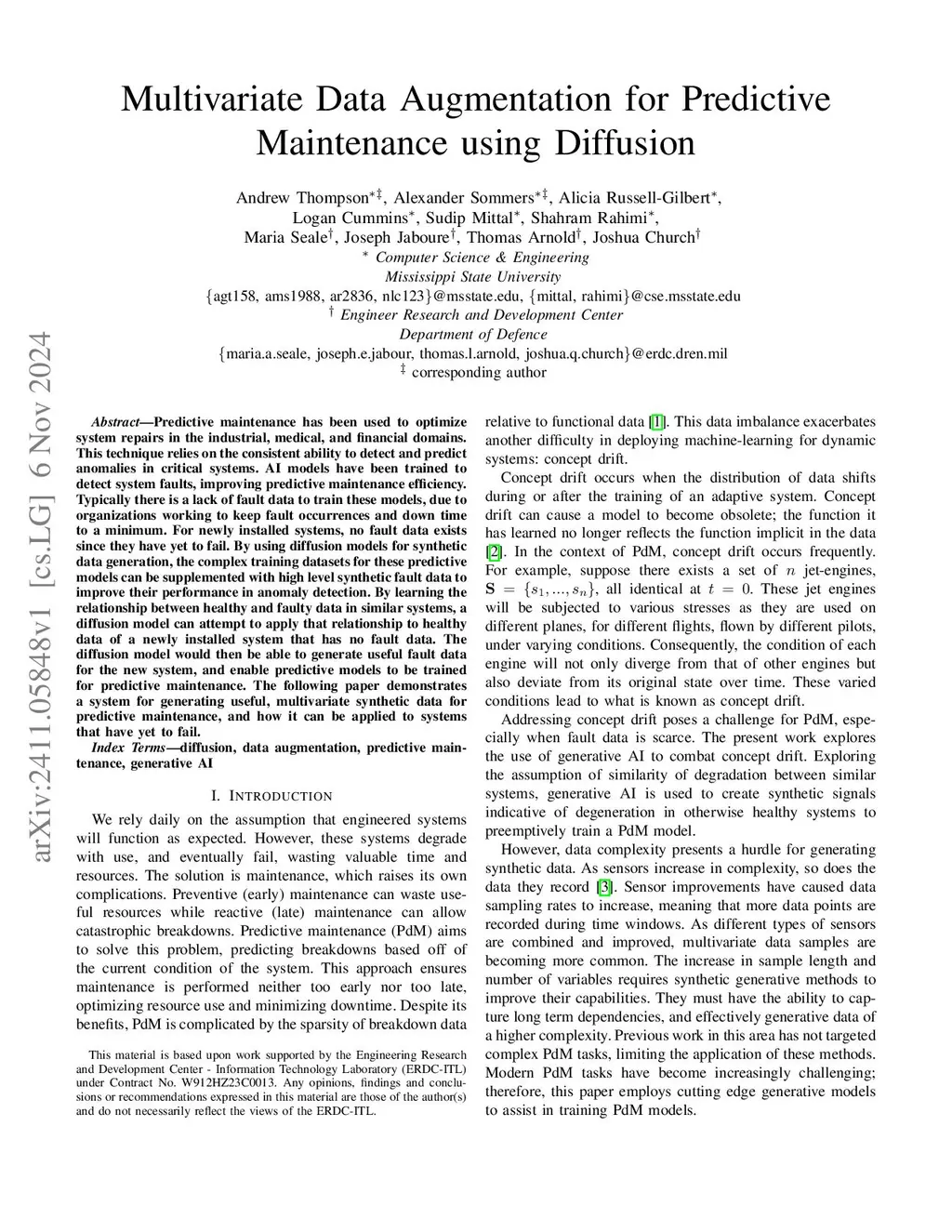 Predictive maintenance has been used to optimize system repairs in the industrial, medical, and financial domains. This technique relies on the consistent ability to detect and predict anomalies in critical systems. AI models have been trained to detect system faults, improving predictive maintenance efficiency. Typically there is a lack of fault data to train these models, due to organizations working to keep fault occurrences and down time to a minimum. For newly installed systems, no fault data exists since they have yet to fail. By using diffusion models for synthetic data generation, the complex training datasets for these predictive models can be supplemented with high level synthetic fault data to improve their performance in anomaly detection. By learning the relationship between healthy and faulty data in similar systems, a diffusion model can attempt to apply that relationship to healthy data of a newly installed system that has no fault data. The diffusion model would then be able to generate useful fault data for the new system, and enable predictive models to be trained for predictive maintenance. The following paper demonstrates a system for generating useful, multivariate synthetic data for predictive maintenance, and how it can be applied to systems that have yet to fail.