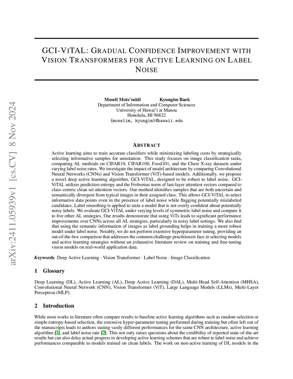 GCI-ViTAL: Gradual Confidence Improvement with Vision Transformers for