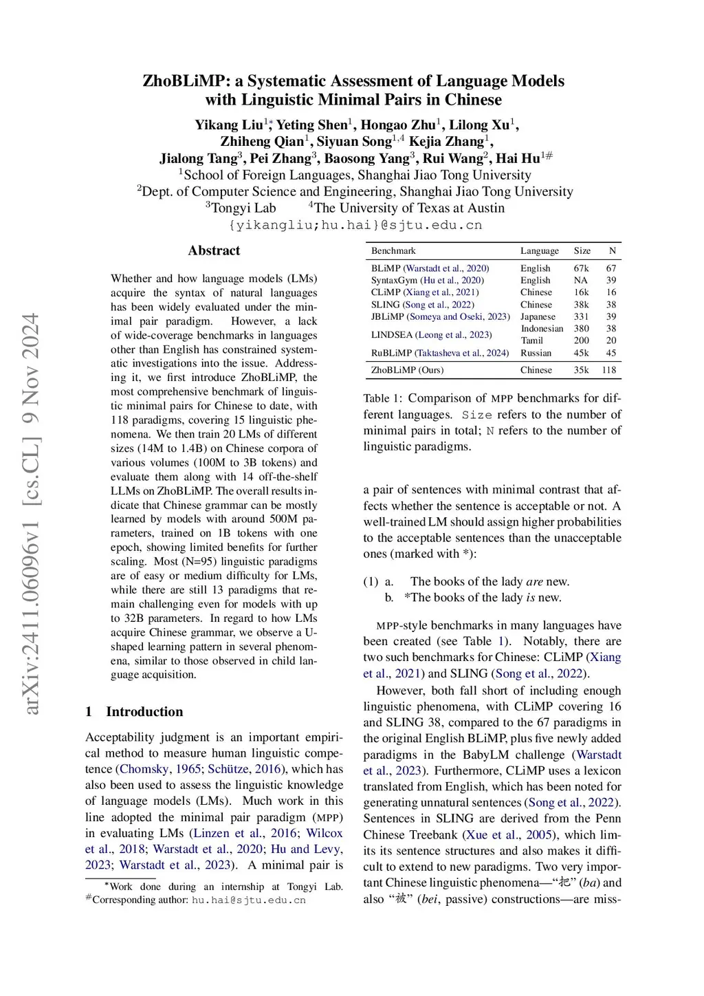 We present ZhoBLiMP, the largest linguistic minimal pair benchmark for Chinese, with over 100 paradigms, ranging from topicalization to the \textit{Ba} construction. We then train from scratch a suite of Chinese language models (LMs) with different tokenizers, parameter sizes, and token volumes, to study the learning curves of LMs on Chinese. To mitigate the biases introduced by unequal lengths of the sentences in a minimal pair, we propose a new metric named sub-linear length normalized log-probabilities (SLLN-LP). Using SLLN-LP as the metric, our results show that \textsc{Anaphor}, \textsc{Quantifiers}, and \textsc{Ellipsis} in Chinese are difficult for LMs even up to 32B parameters, and that SLLN-LP successfully mitigates biases in ZhoBLiMP, JBLiMP and BLiMP. We conclude that future evaluations should be more carefully designed to consider the intricate relations between linking functions, LMs, and targeted minimal pairs.