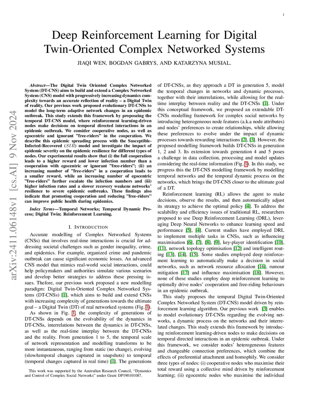 Deep Reinforcement Learning for Digital Twin-Oriented Complex Networked