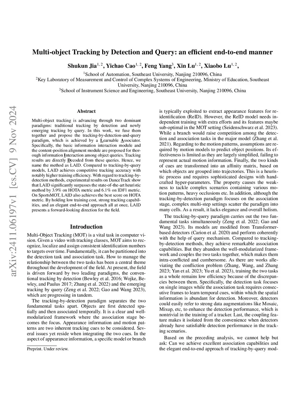 Tracking by Detection and Query: An Efficient End-to-End Framework for Multi-Object Tracking