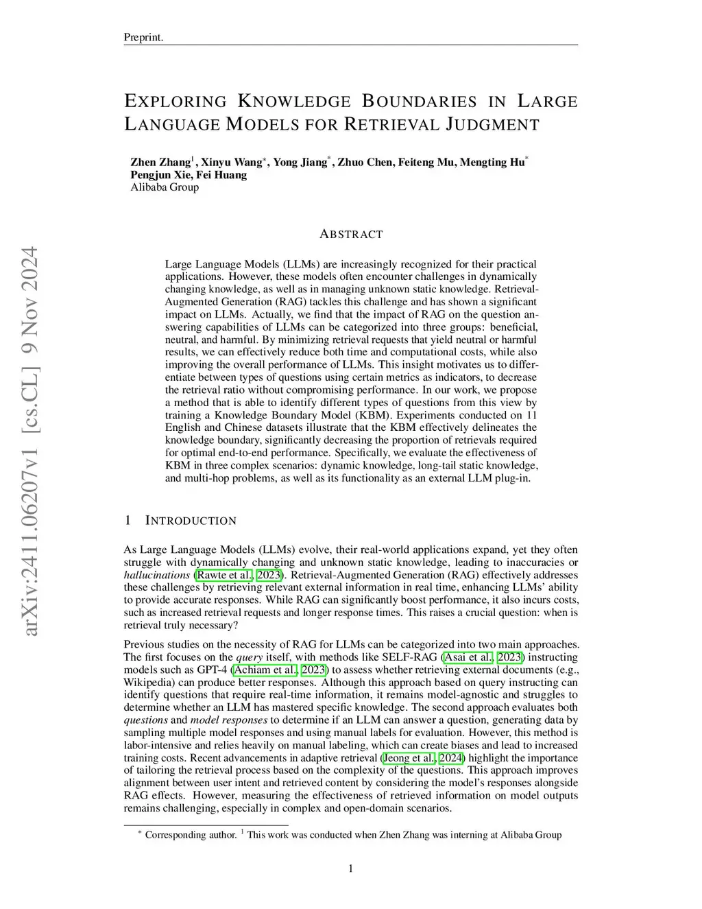 Large Language Models (LLMs) often struggle with dynamically changing knowledge and handling unknown static information. Retrieval-Augmented Generation (RAG) is employed to tackle these challenges and has a significant impact on improving LLM performance. In fact, we find that not all questions need to trigger RAG. By retrieving parts of knowledge unknown to the LLM and allowing the LLM to answer the rest, we can effectively reduce both time and computational costs. In our work, we propose a Knowledge Boundary Model (KBM) to express the known/unknown of a given question, and to determine whether a RAG needs to be triggered. Experiments conducted on 11 English and Chinese datasets illustrate that the KBM effectively delineates the knowledge boundary, significantly decreasing the proportion of retrievals required for optimal end-to-end performance. Furthermore, we evaluate the effectiveness of KBM in three complex scenarios: dynamic knowledge, long-tail static knowledge, and multi-hop problems, as well as its functionality as an external LLM plug-in.