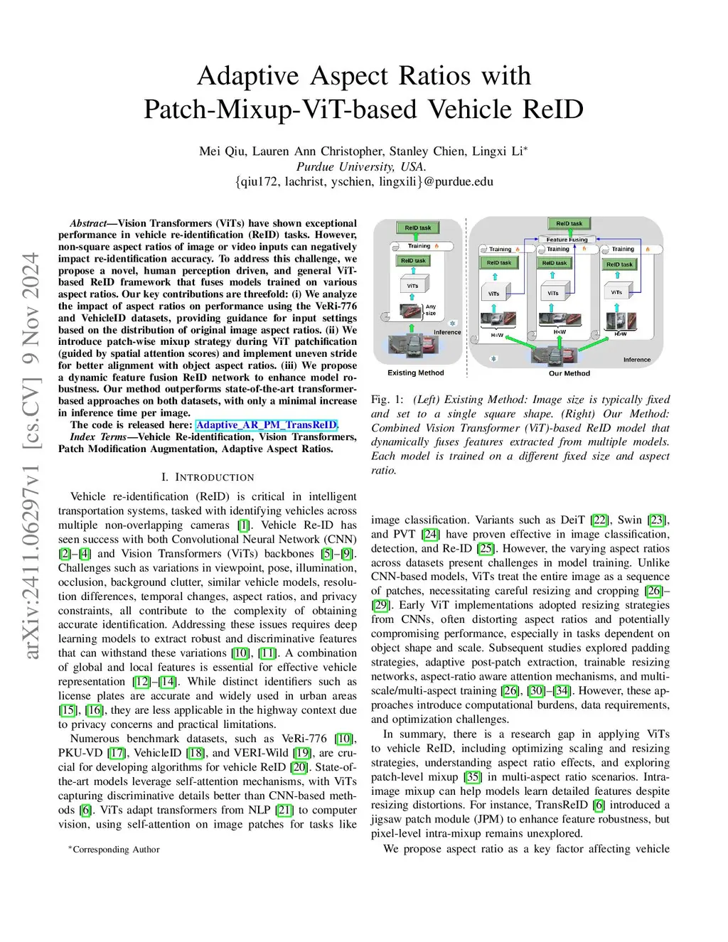 Adaptive Aspect Ratios with Patch-Mixup-ViT-based Vehicle ReID