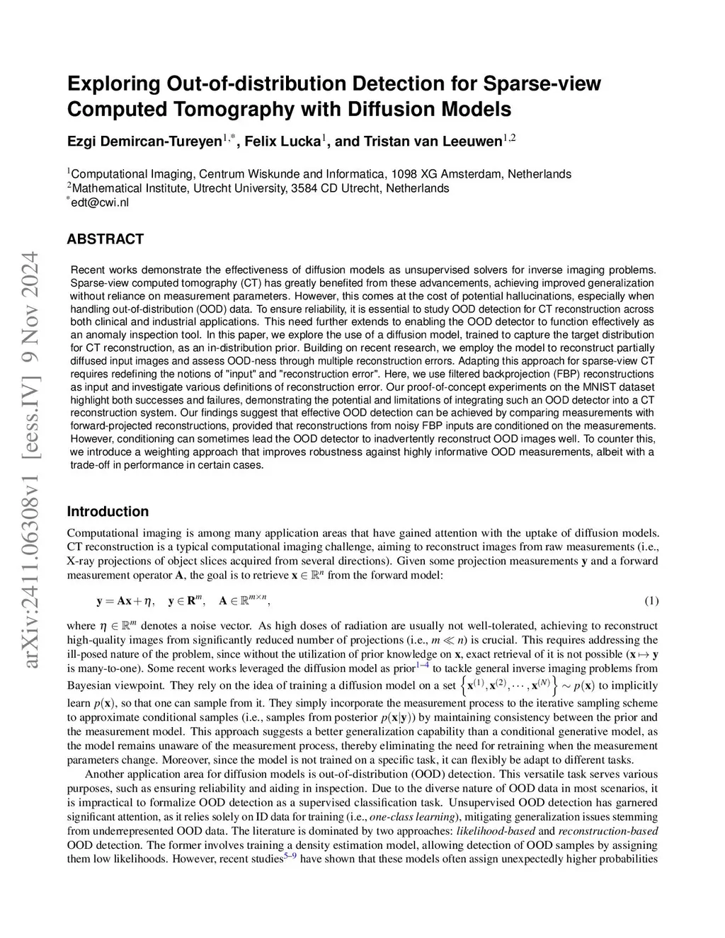 Recent works demonstrate the effectiveness of diffusion models as unsupervised solvers for inverse imaging problems. Sparse-view computed tomography (CT) has greatly benefited from these advancements, achieving improved generalization without reliance on measurement parameters. However, this comes at the cost of potential hallucinations, especially when handling out-of-distribution (OOD) data. To ensure reliability, it is essential to study OOD detection for CT reconstruction across both clinical and industrial applications. This need further extends to enabling the OOD detector to function effectively as an anomaly inspection tool. In this paper, we explore the use of a diffusion model, trained to capture the target distribution for CT reconstruction, as an in-distribution prior. Building on recent research, we employ the model to reconstruct partially diffused input images and assess OOD-ness through multiple reconstruction errors. Adapting this approach for sparse-view CT requires redefining the notions of ``input'' and ``reconstruction error''. Here, we use filtered backprojection (FBP) reconstructions as input and investigate various definitions of reconstruction error. Our proof-of-concept experiments on the MNIST dataset highlight both successes and failures, demonstrating the potential and limitations of integrating such an OOD detector into a CT reconstruction system. Our findings suggest that effective OOD detection can be achieved by comparing measurements with forward-projected reconstructions, provided that reconstructions from noisy FBP inputs are conditioned on the measurements. However, conditioning can sometimes lead the OOD detector to inadvertently reconstruct OOD images well. To counter this, we introduce a weighting approach that improves robustness against highly informative OOD measurements, albeit with a trade-off in performance in certain cases.