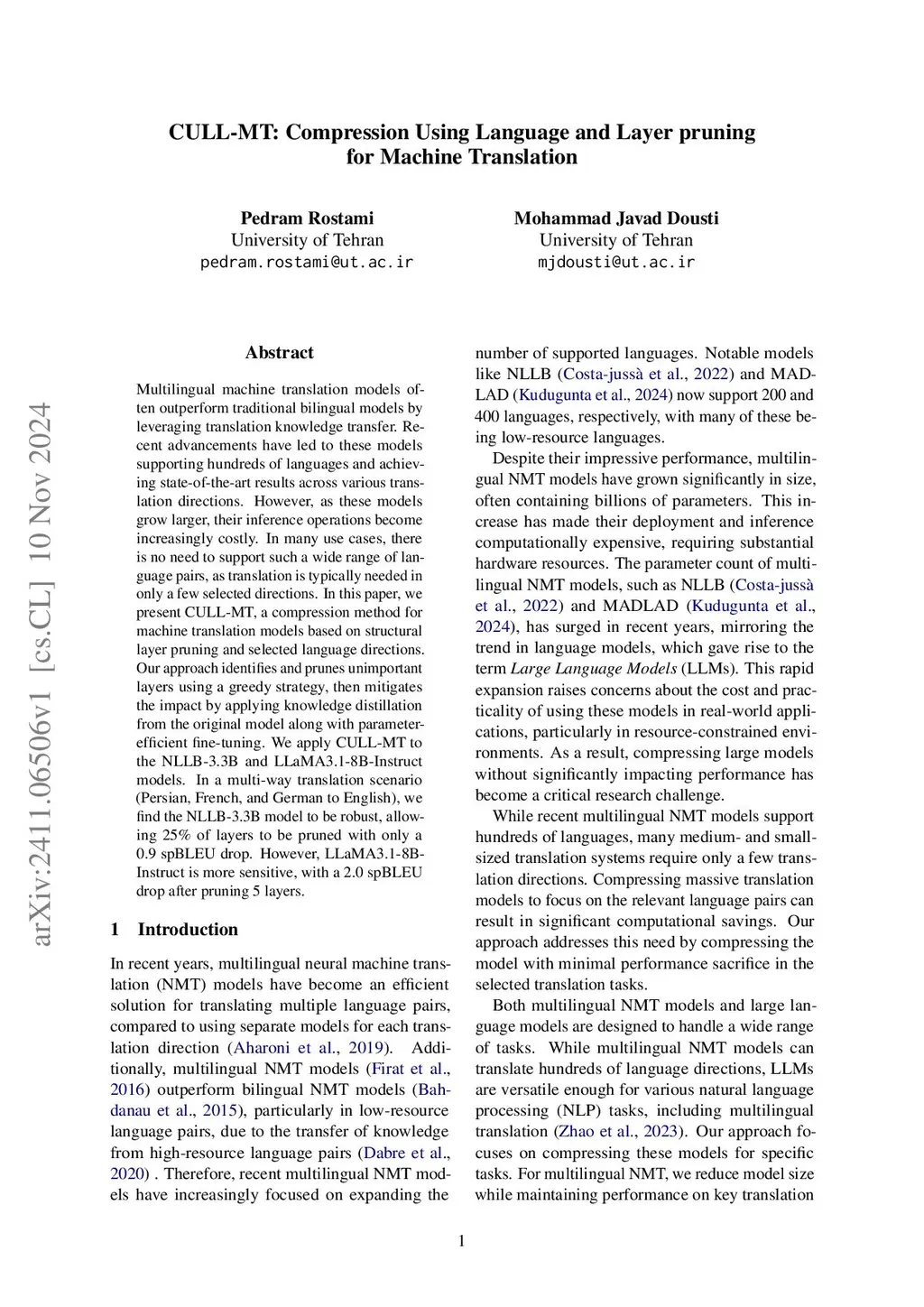 CULL-MT: Compression Using Language and Layer pruning for Machine