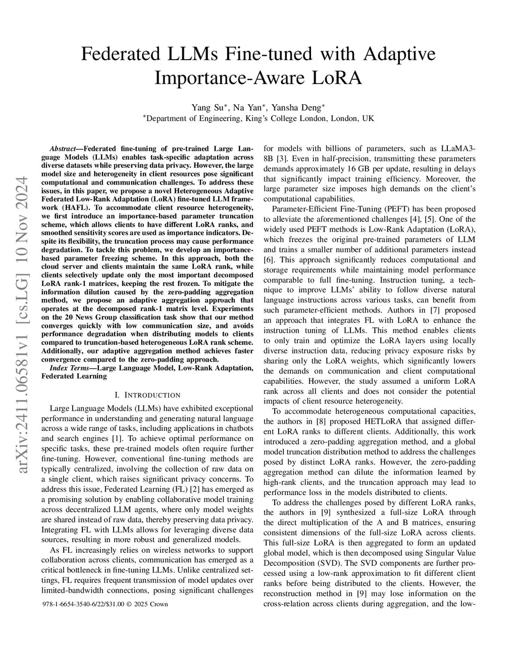 HAFLQ: Heterogeneous Adaptive Federated LoRA Fine-tuned LLM with Quantization