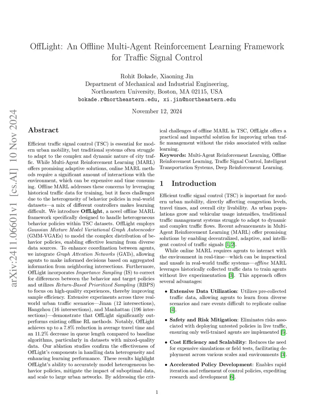 OffLight: An Offline Multi-Agent Reinforcement Learning Framework for
