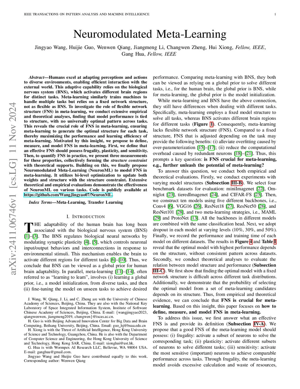Humans excel at adapting perceptions and actions to diverse environments, enabling efficient interaction with the external world. This adaptive capability relies on the biological nervous system (BNS), which activates different brain regions for distinct tasks. Meta-learning similarly trains machines to handle multiple tasks but relies on a fixed network structure, not as flexible as BNS. To investigate the role of flexible network structure (FNS) in meta-learning, we conduct extensive empirical and theoretical analyses, finding that model performance is tied to structure, with no universally optimal pattern across tasks. This reveals the crucial role of FNS in meta-learning, ensuring meta-learning to generate the optimal structure for each task, thereby maximizing the performance and learning efficiency of meta-learning. Motivated by this insight, we propose to define, measure, and model FNS in meta-learning. First, we define that an effective FNS should possess frugality, plasticity, and sensitivity. Then, to quantify FNS in practice, we present three measurements for these properties, collectively forming the \emph{structure constraint} with theoretical supports. Building on this, we finally propose Neuromodulated Meta-Learning (NeuronML) to model FNS in meta-learning. It utilizes bi-level optimization to update both weights and structure with the structure constraint. Extensive theoretical and empirical evaluations demonstrate the effectiveness of NeuronML on various tasks. Code is publicly available at \href{https://github.com/WangJingyao07/NeuronML}{https://github.com/WangJingyao07/NeuronML}.