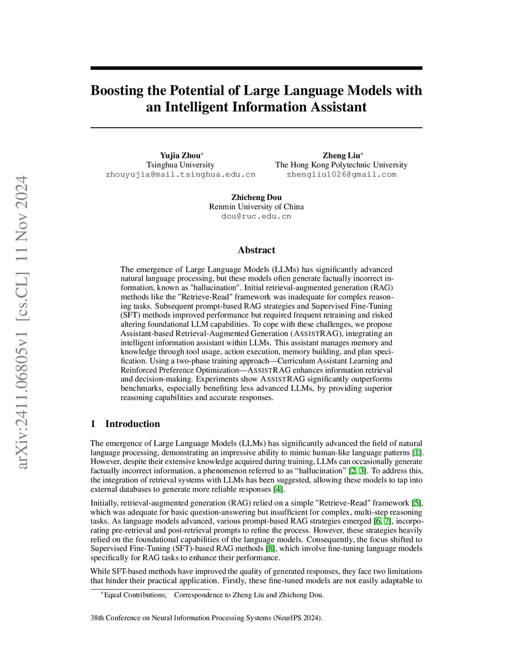 AssistRAG: Boosting the Potential of Large Language Models with an