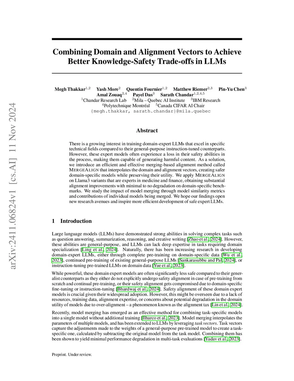 Combining Domain and Alignment Vectors to Achieve Better Knowledge-Safety Trade-offs in LLMs