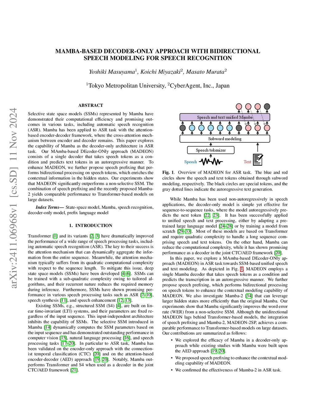 Mamba-based Decoder-Only Approach with Bidirectional Speech Modeling for