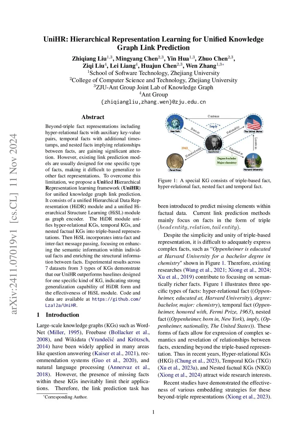 UniHR: Hierarchical Representation Learning for Unified Knowledge Graph Link Prediction
