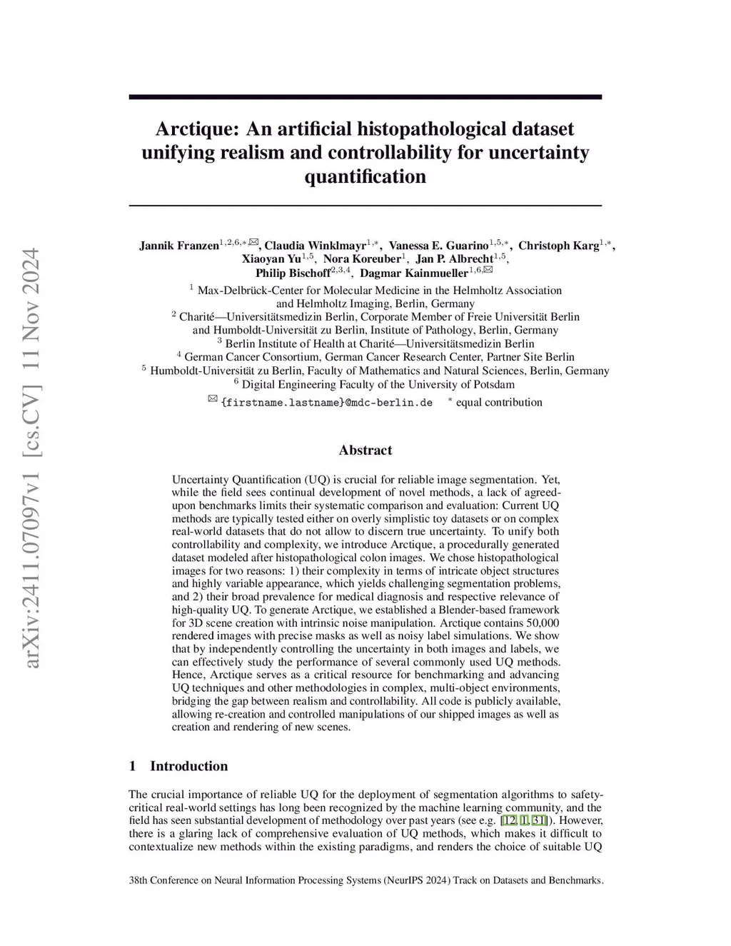Uncertainty Quantification (UQ) is crucial for reliable image segmentation. Yet, while the field sees continual development of novel methods, a lack of agreed-upon benchmarks limits their systematic comparison and evaluation: Current UQ methods are typically tested either on overly simplistic toy datasets or on complex real-world datasets that do not allow to discern true uncertainty. To unify both controllability and complexity, we introduce Arctique, a procedurally generated dataset modeled after histopathological colon images. We chose histopathological images for two reasons: 1) their complexity in terms of intricate object structures and highly variable appearance, which yields challenging segmentation problems, and 2) their broad prevalence for medical diagnosis and respective relevance of high-quality UQ. To generate Arctique, we established a Blender-based framework for 3D scene creation with intrinsic noise manipulation. Arctique contains 50,000 rendered images with precise masks as well as noisy label simulations. We show that by independently controlling the uncertainty in both images and labels, we can effectively study the performance of several commonly used UQ methods. Hence, Arctique serves as a critical resource for benchmarking and advancing UQ techniques and other methodologies in complex, multi-object environments, bridging the gap between realism and controllability. All code is publicly available, allowing re-creation and controlled manipulations of our shipped images as well as creation and rendering of new scenes.