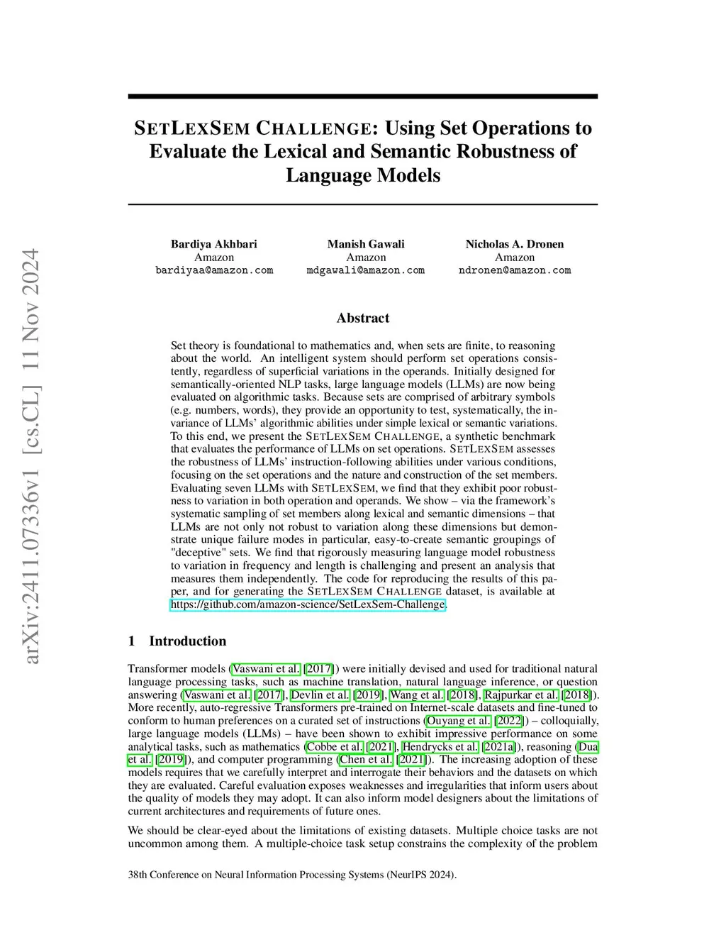 Set theory is foundational to mathematics and, when sets are finite, to reasoning about the world. An intelligent system should perform set operations consistently, regardless of superficial variations in the operands. Initially designed for semantically-oriented NLP tasks, large language models (LLMs) are now being evaluated on algorithmic tasks. Because sets are comprised of arbitrary symbols (e.g. numbers, words), they provide an opportunity to test, systematically, the invariance of LLMs' algorithmic abilities under simple lexical or semantic variations. To this end, we present the SetLexSem Challenge, a synthetic benchmark that evaluates the performance of LLMs on set operations. SetLexSem assesses the robustness of LLMs' instruction-following abilities under various conditions, focusing on the set operations and the nature and construction of the set members. Evaluating seven LLMs with SetLexSem, we find that they exhibit poor robustness to variation in both operation and operands. We show -- via the framework's systematic sampling of set members along lexical and semantic dimensions -- that LLMs are not only not robust to variation along these dimensions but demonstrate unique failure modes in particular, easy-to-create semantic groupings of "deceptive" sets. We find that rigorously measuring language model robustness to variation in frequency and length is challenging and present an analysis that measures them independently. The code for reproducing the results of this paper, and for generating the SetLexSem Challenge dataset, is available at \href{https://github.com/amazon-science/SetLexSem-Challenge}{https://github.com/amazon-science/SetLexSem-Challenge}.