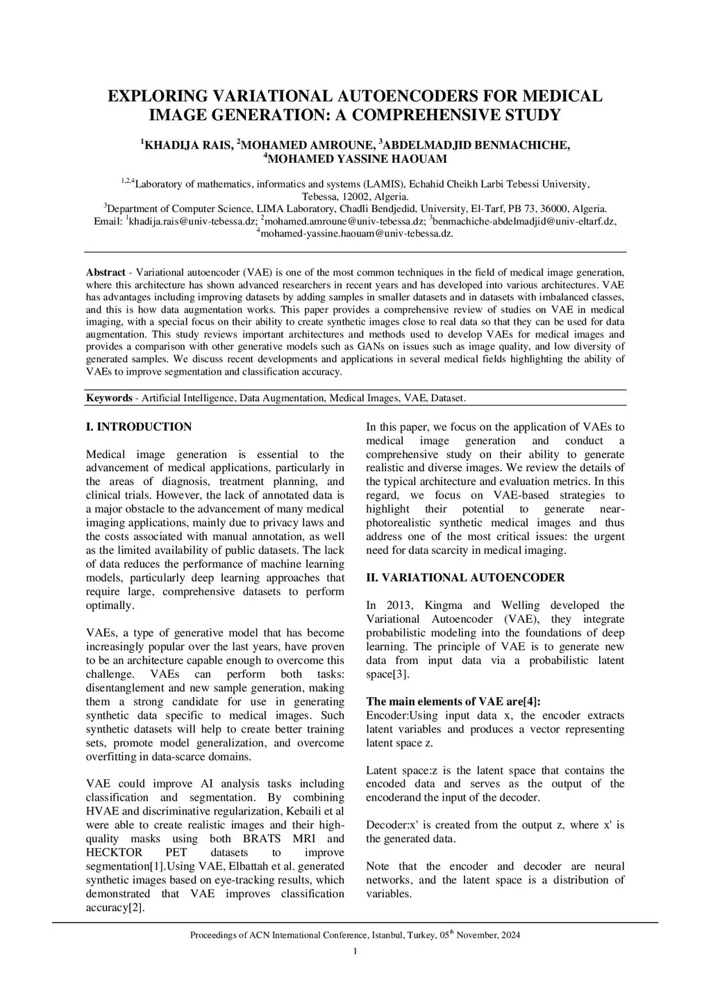 Variational autoencoder (VAE) is one of the most common techniques in the field of medical image generation, where this architecture has shown advanced researchers in recent years and has developed into various architectures. VAE has advantages including improving datasets by adding samples in smaller datasets and in datasets with imbalanced classes, and this is how data augmentation works. This paper provides a comprehensive review of studies on VAE in medical imaging, with a special focus on their ability to create synthetic images close to real data so that they can be used for data augmentation. This study reviews important architectures and methods used to develop VAEs for medical images and provides a comparison with other generative models such as GANs on issues such as image quality, and low diversity of generated samples. We discuss recent developments and applications in several medical fields highlighting the ability of VAEs to improve segmentation and classification accuracy.