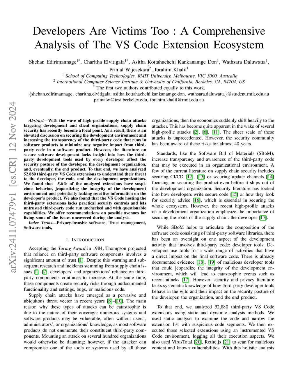 Developers Are Victims Too : A Comprehensive Analysis of The VS Code