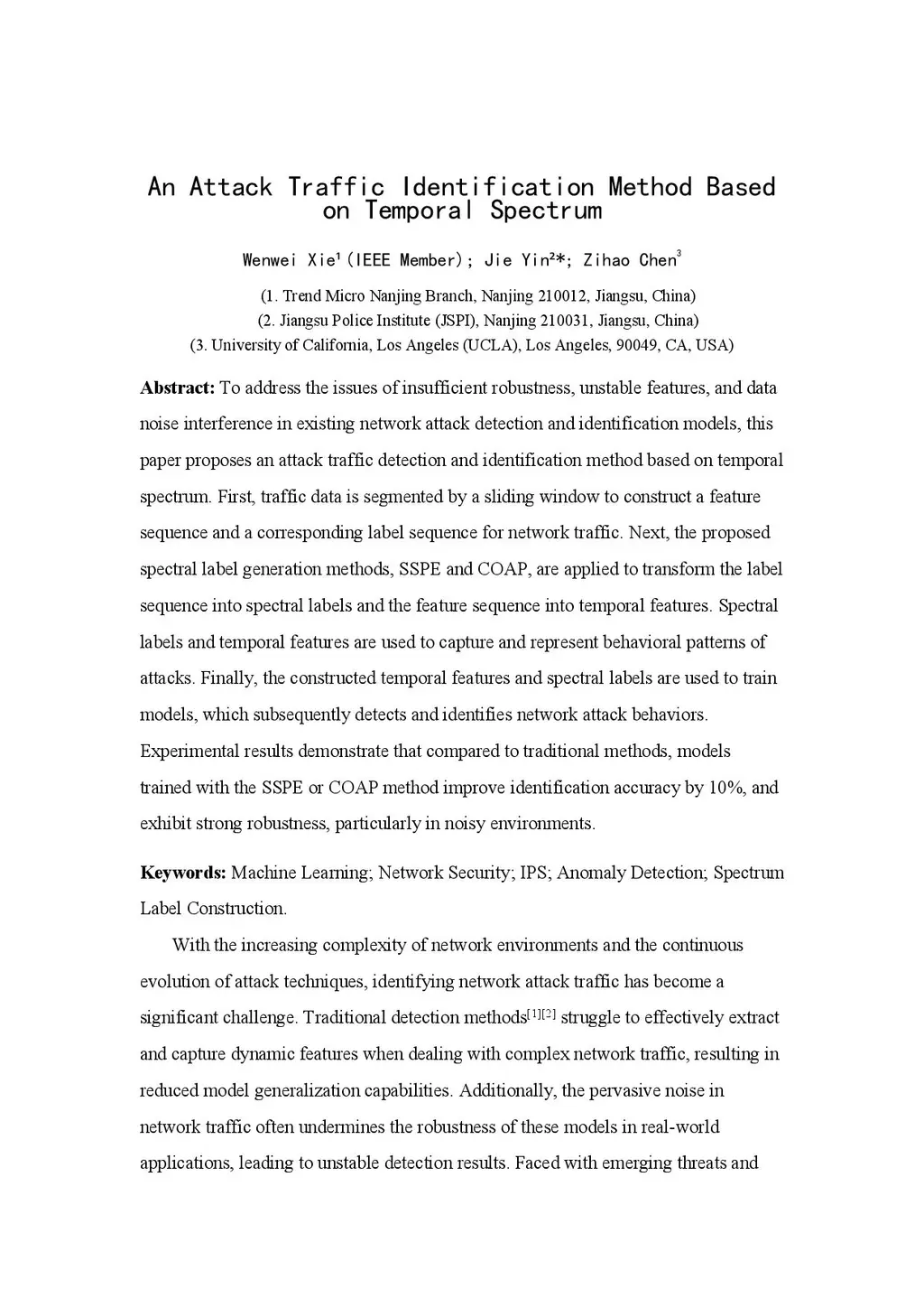 An Attack Traffic Identification Method Based on Temporal Spectrum