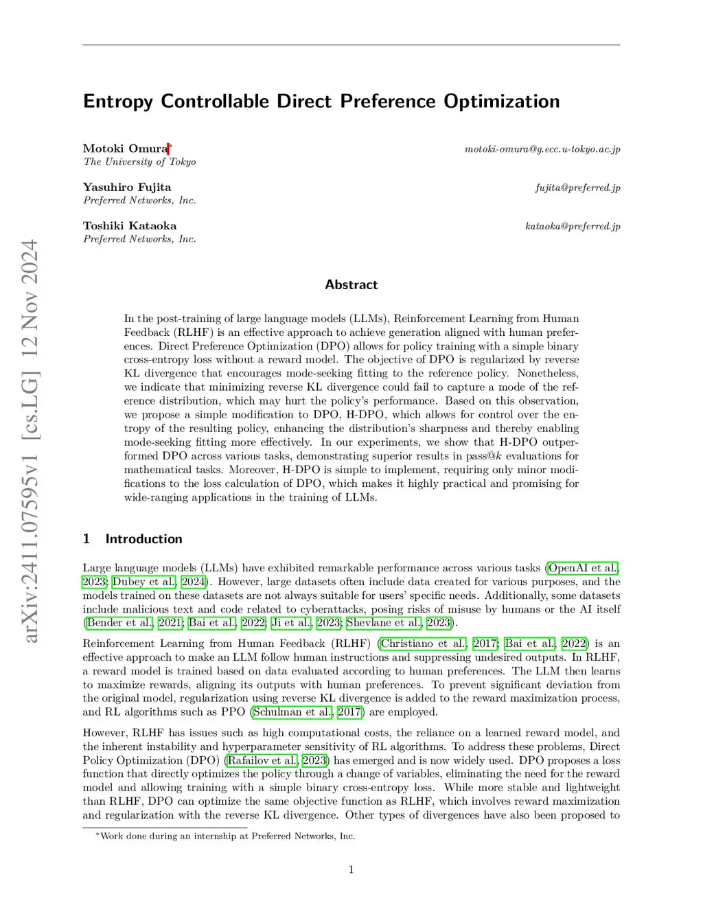Entropy Controllable Direct Preference Optimization