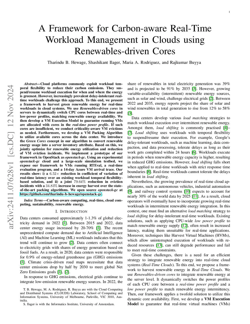 A Framework for Carbon-aware Real-Time Workload Management in Clouds