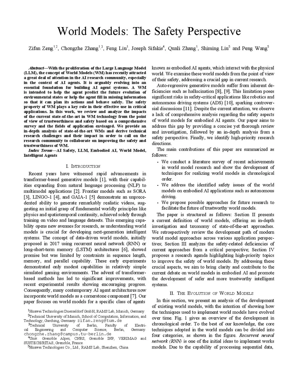 With the proliferation of the Large Language Model (LLM), the concept of World Models (WM) has recently attracted a great deal of attention in the AI research community, especially in the context of AI agents. It is arguably evolving into an essential foundation for building AI agent systems. A WM is intended to help the agent predict the future evolution of environmental states or help the agent fill in missing information so that it can plan its actions and behave safely. The safety property of WM plays a key role in their effective use in critical applications. In this work, we review and analyze the impacts of the current state-of-the-art in WM technology from the point of view of trustworthiness and safety based on a comprehensive survey and the fields of application envisaged. We provide an in-depth analysis of state-of-the-art WMs and derive technical research challenges and their impact in order to call on the research community to collaborate on improving the safety and trustworthiness of WM.