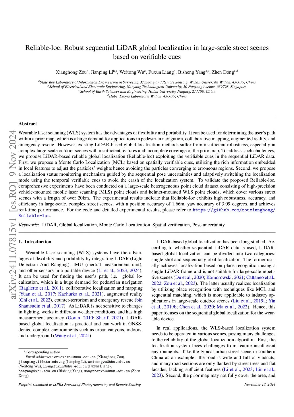 Reliable-loc: Robust sequential LiDAR global localization in large-scale street scenes based on verifiable cues