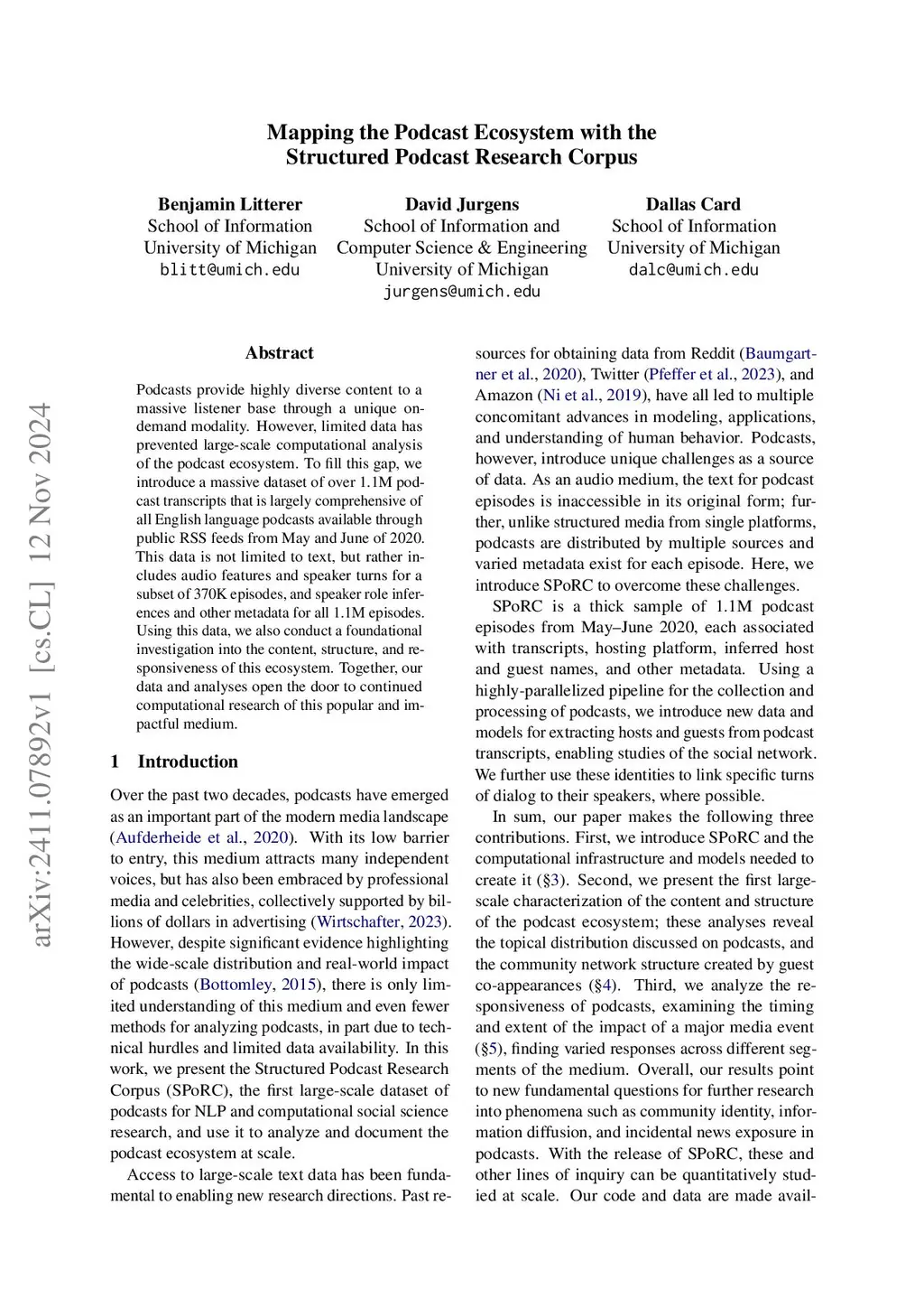 Mapping the Podcast Ecosystem with the Structured Podcast Research Corpus