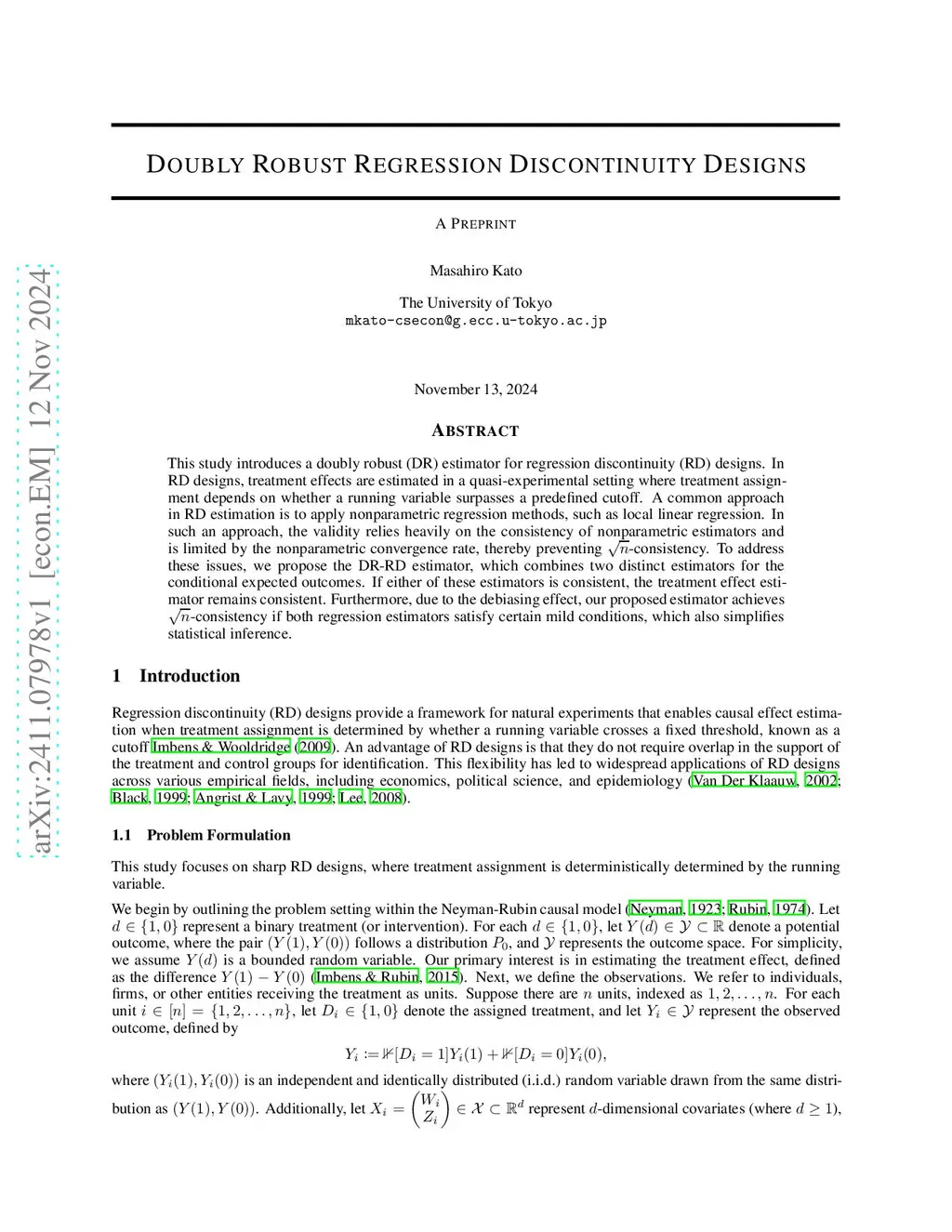This note introduces a doubly robust (DR) estimator for regression discontinuity (RD) designs. RD designs provide a quasi-experimental framework for estimating treatment effects, where treatment assignment depends on whether a running variable surpasses a predefined cutoff. A common approach in RD estimation is the use of nonparametric regression methods, such as local linear regression. However, the validity of these methods still relies on the consistency of the nonparametric estimators. In this study, we propose the DR-RD estimator, which combines two distinct estimators for the conditional expected outcomes. The primary advantage of the DR-RD estimator lies in its ability to ensure the consistency of the treatment effect estimation as long as at least one of the two estimators is consistent. Consequently, our DR-RD estimator enhances robustness of treatment effect estimators in RD designs.