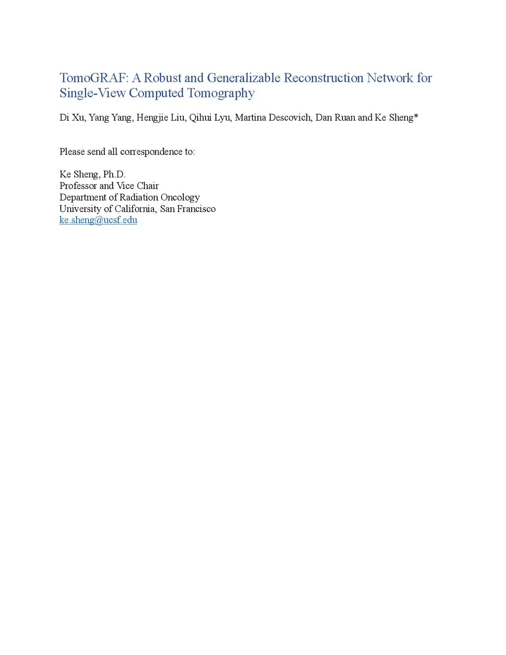 TomoGRAF: A Robust and Generalizable Reconstruction Network for