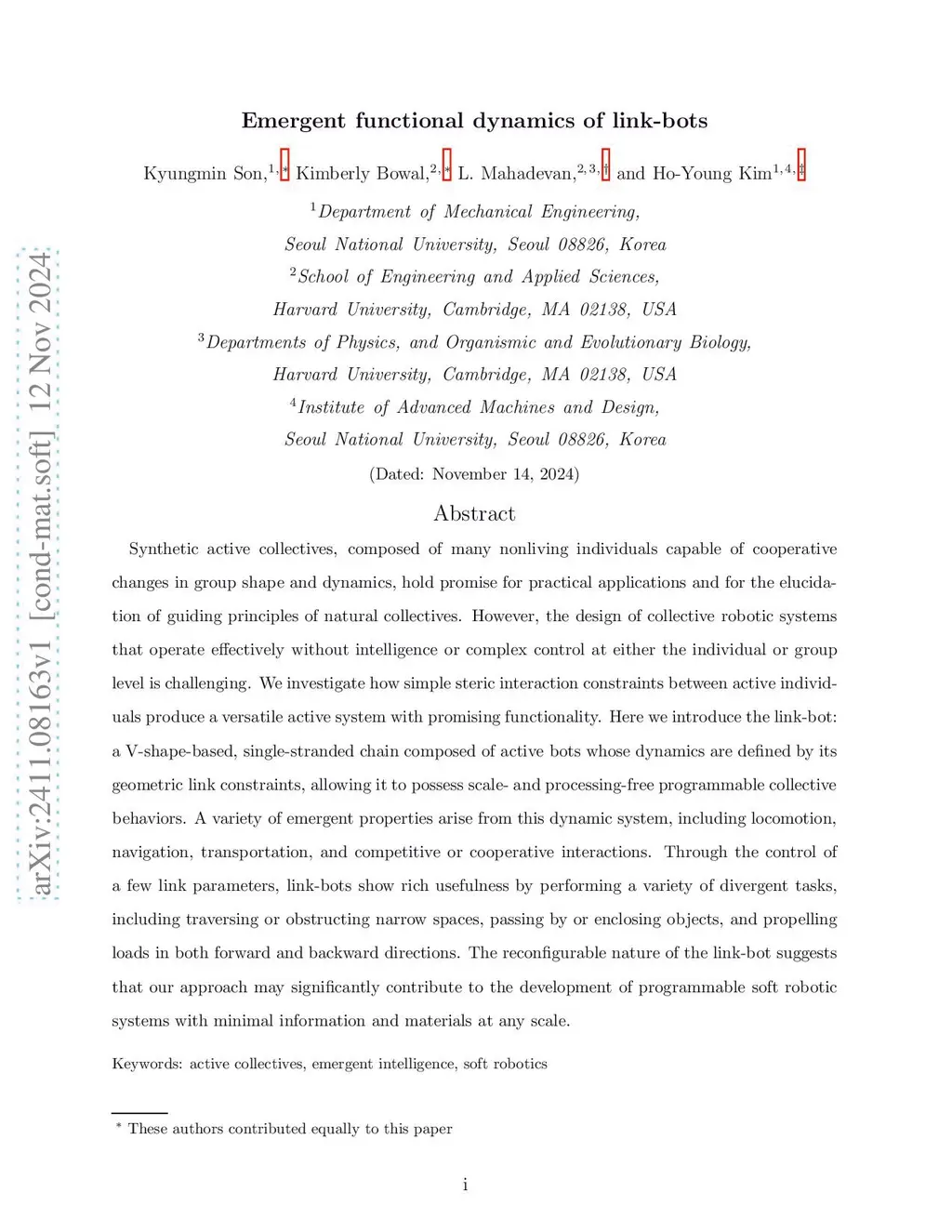 Emergent functional dynamics of link-bots