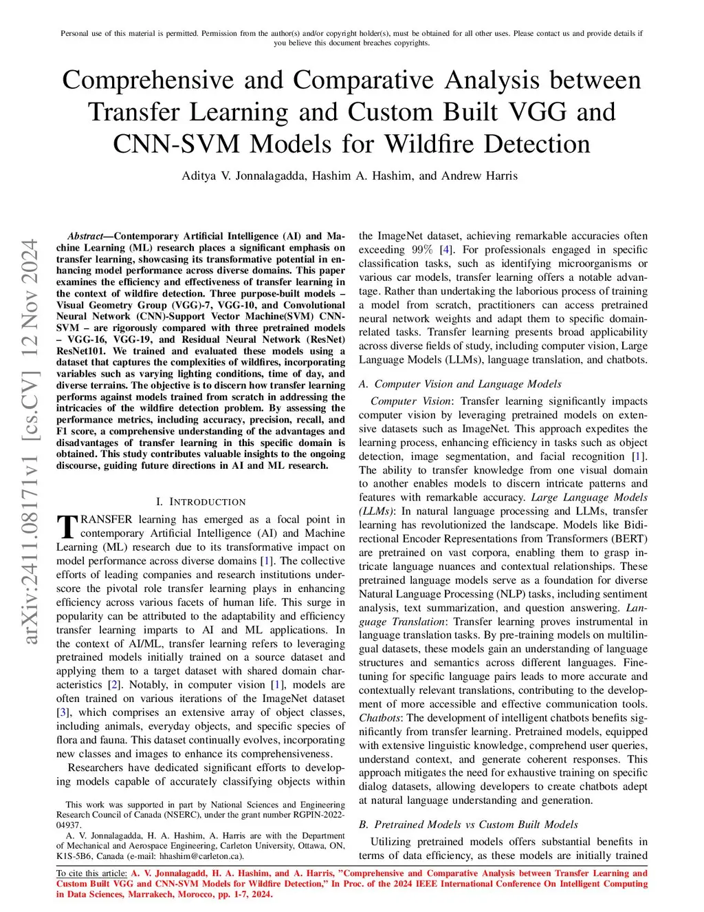 Custom Built VGG and CNN-SVM Models for Wildfire Detection