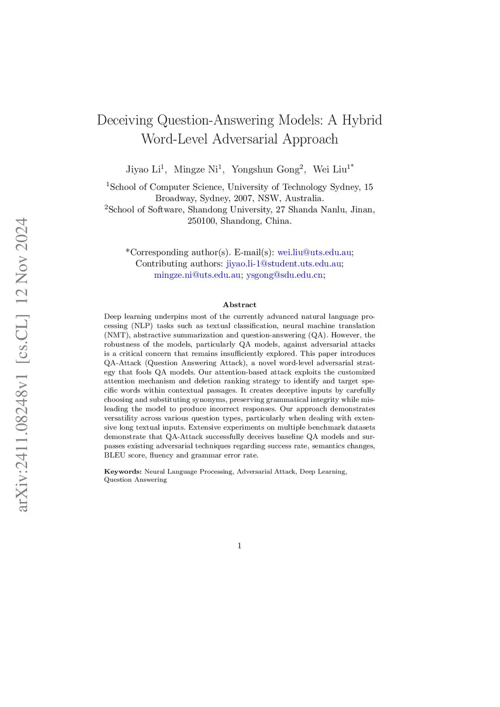 Deceiving Question-Answering Models: A Hybrid Word-Level Adversarial