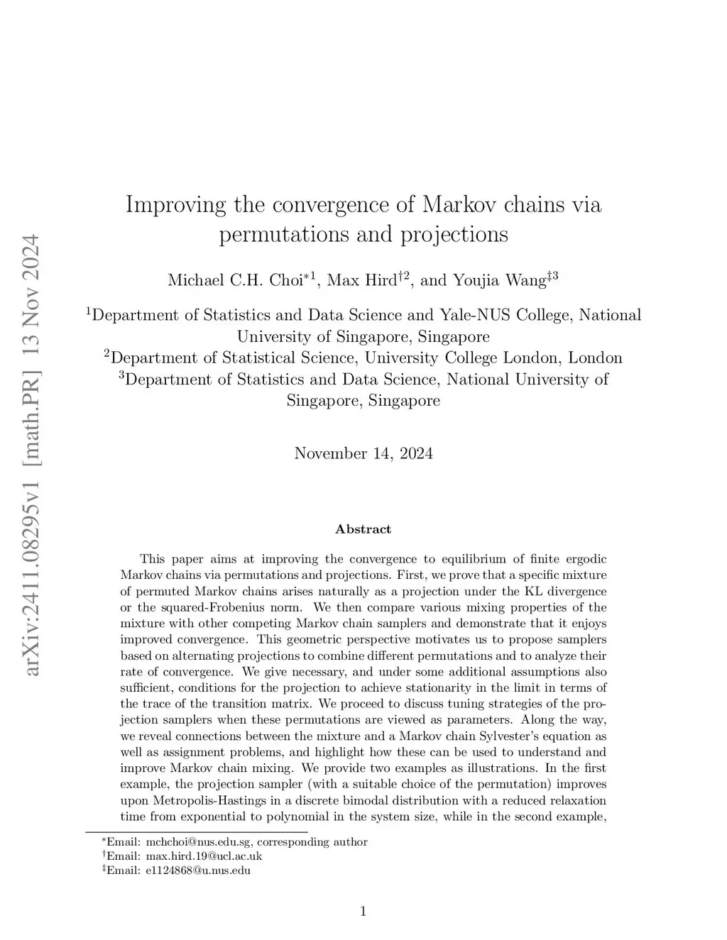 Improving the convergence of Markov chains via permutations and
